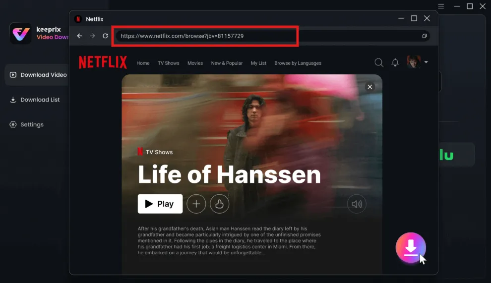 Step 2. Log in to Netflix: Launch Keeprix Video Downloader, choose Netflix platform and log in to your Netflix account through the built-in browser.