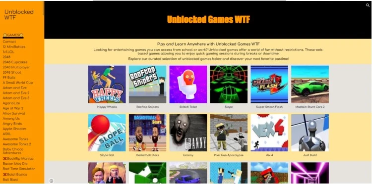 Unblocked Games WTF is an online gaming website offering a variety of games. Unblocked games are not restricted in the schools you can play on computers with restricted internet access, such as at schools or workplaces.