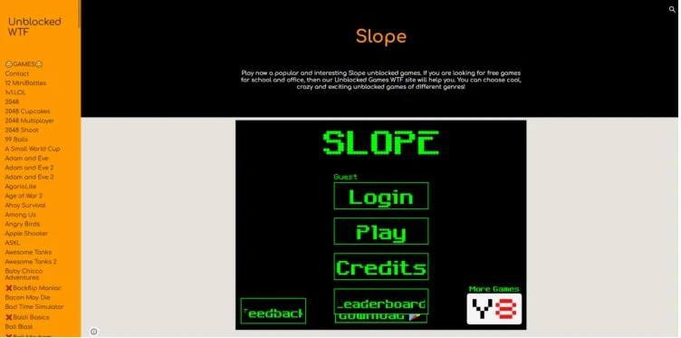 Slope Unblocked Games WTF is a thrilling 3D running game where you control a ball rolling down a neon-lit track, dodging obstacles, and trying to stay on course. The further you go, the faster the ball moves, making it a true test of reflexes and skill. It’s a great way to pass the time, especially if you’re looking for a quick adrenaline rush during a break.